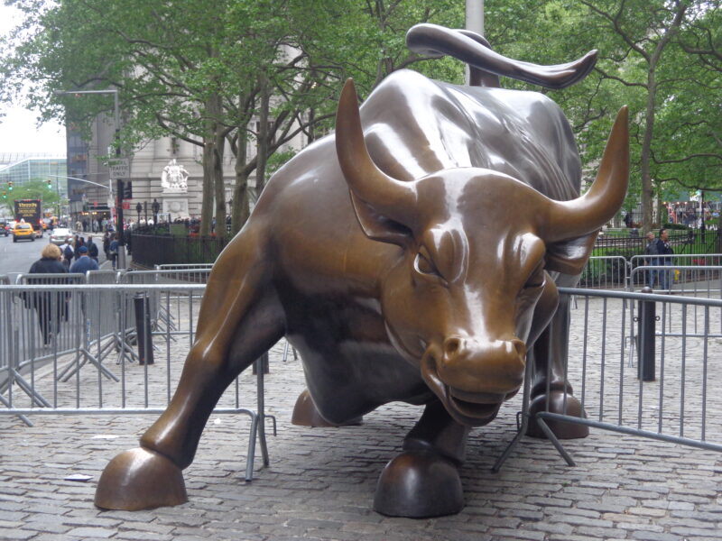 – Financial District: Um dos bairros mais antigos e coração pulsante da economia da cidade, é ali que se concentram os maiores escritórios e sedes de empresas financeiras. E também a famosa rua de Wall Street (quem não se lembra do filme O Lobo de Wall Street), o The Charging Bull (estátua do touro, cuja passada de mão em suas “bolas” sugere prosperidade financeira – se ajudar a pagar o cartão pós viagem, já estamos no lucro, rs), a bolsa de valores New York Stock Exchange, o Federal Hall (primeiro capitólio e local em que ocorreu a posse do primeiro presidente dos EUA, George Washington). Um check por prédios e locais importantes para a história e desenvolvimento do país. Quando estivemos por lá estava rolando um protesto, muito comum em grandes centros. Fiquem atentos!