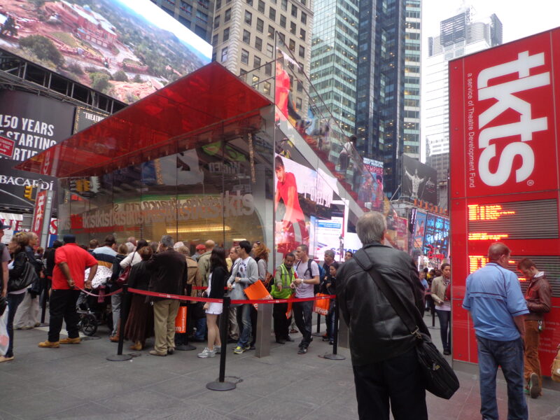 Dica Roteirizando: Uma das melhores formas de garantir seus ingressos com preços acessíveis, é a TKTs. Embaixo da famosa escada vermelha na Times Square, possuem descontos que chegam de 50% do valor cheio. Porém, vale ressaltar que a venda é para os espetáculos do mesmo dia. Então, chegue um pouco antes do horário de abertura e já fique nas imediações, para que você consiga comprar logo os primeiros ingressos. O que não garante, mas aumenta a possibilidade de pegar bons lugares. Nós demos muita sorte! Outra boa opção é a unidade no Lincoln Center, com menos fila e venda de ingressos também para o dia seguinte.