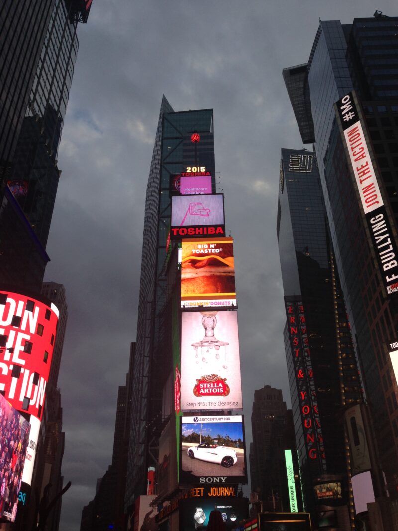 Dica Roteirizando: Por ali, não me lembro exatamente em que altura, mas é bem no miolo da Times Square, existia um telão que de tempos em tempos, ficava tirando fotos das pessoas que passavam por lá! Pare em frente a ele, aguarde a contagem e tire uma foto. Uma recordação bacana e diferente de lá. Claro que garanti a minha, né!