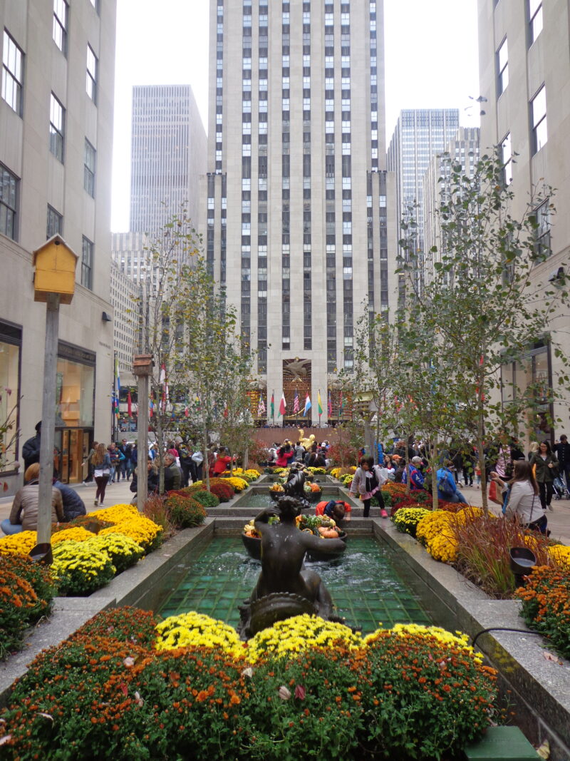 – Complexo do Rockefeller Center: Complexo comercial de prédios no estilo Art Déco, sendo o Comcast Building o mais instagramável deles. Pois, fica de frente para a árvore de Natal e pista de patinação de gelo The Rink, ambas muitas vezes vistas em filmes e séries de TV. Assim como pelo The Channel Gardens, lindíssimo jardim que possui uma instalação sazonal para marcar a chegada do Outono. Tive a oportunidade de estar lá nessa época e posso dizer que é realmente um charme!